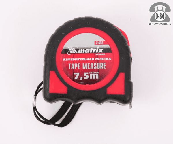 Рулетка измерительная Матрикс 7.5м с ручным фиксатором: продажа в Воронеже. Цена, характеристики, параметры. Телефоны, адреса, сайты реализующих фирм.