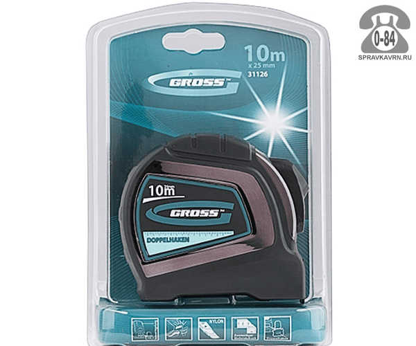 Измерительная рулетка Гросс Doppelhaken 10 м x 25 мм: продажа в Воронеже. Цена, характеристики, параметры. Телефоны, адреса, сайты реализующих фирм.