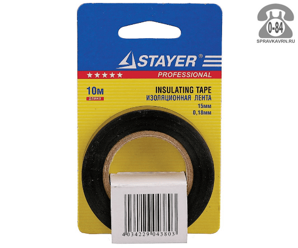 Изолента Стайер (Stayer) ПВХ чёрный 15 мм х10 м: продажа в Воронеже. Цена, характеристики, параметры. Телефоны, адреса, сайты реализующих фирм.