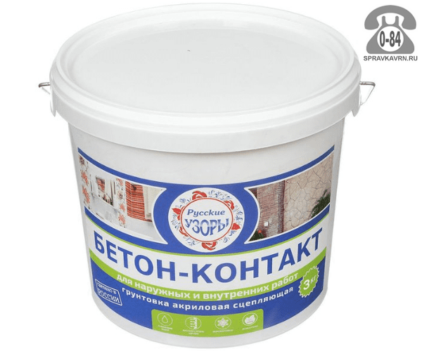 Грунтовка Русские Узоры Бетон-контакт бесцветная 6 кг: продажа в Воронеже. Цена, характеристики, параметры. Телефоны, адреса, сайты реализующих фирм.