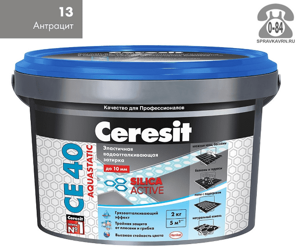 Затирка для плитки Церезит (Ceresit) CE40 Aquastatic, антрацит, 2 кг: продажа в Воронеже. Цена, характеристики, параметры. Телефоны, адреса, сайты реализующих фирм.