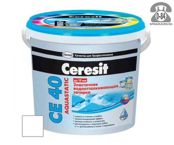 Затирка для плитки Церезит (Ceresit) CE40 Aquastatic, белый, 2 кг: продажа в Воронеже. Цена, характеристики, параметры. Телефоны, адреса, сайты реализующих фирм.