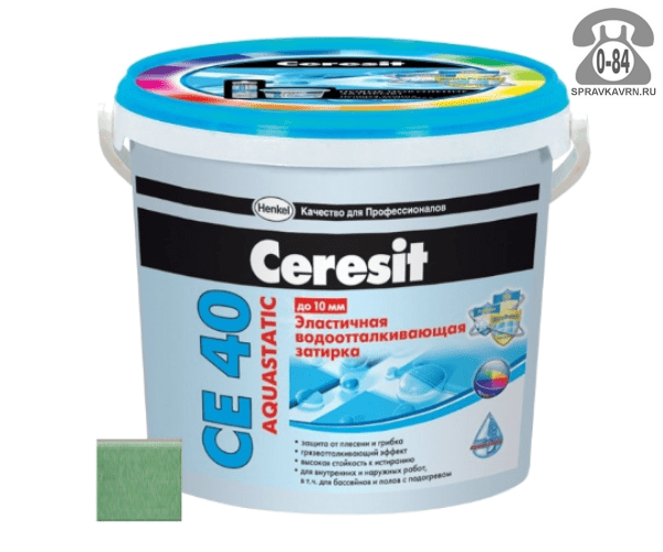 Затирка для плитки Церезит (Ceresit) CE40 Aquastatic, зеленый, 2 кг: продажа в Воронеже. Цена, характеристики, параметры. Телефоны, адреса, сайты реализующих фирм.