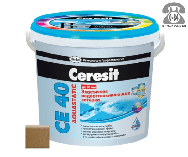 Затирка для плитки Церезит (Ceresit) CE40 Aquastatic, сиена, 2 кг: продажа в Воронеже. Цена, характеристики, параметры. Телефоны, адреса, сайты реализующих фирм.