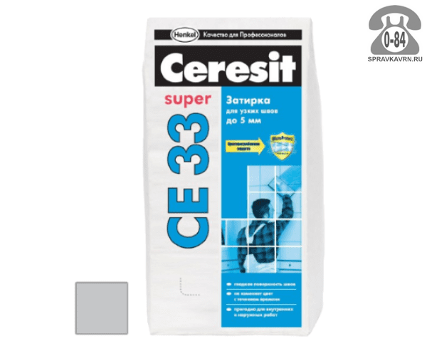 Затирка для плитки Церезит (Ceresit) CE33 Super, манхеттэн, 2 кг: продажа в Воронеже. Цена, характеристики, параметры. Телефоны, адреса, сайты реализующих фирм.