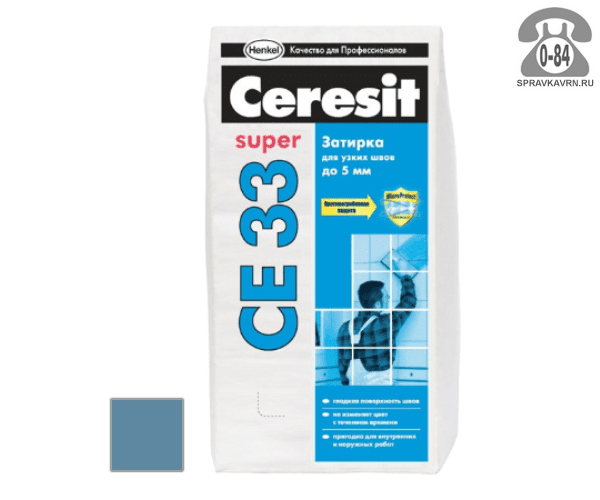 Затирка для плитки Церезит (Ceresit) CE33 Super, серо-голубой, 2 кг: продажа в Воронеже. Цена, характеристики, параметры. Телефоны, адреса, сайты реализующих фирм.