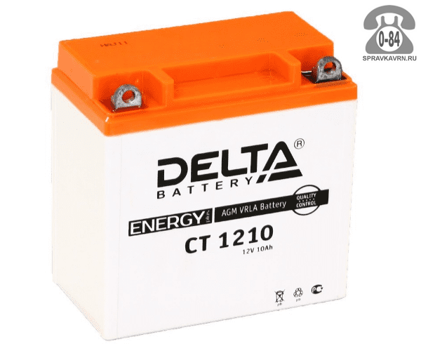 Аккумулятор для транспортного средства Дельта (Delta) СТ 1210 AGM 10 А*час 120 А 12 В прямая 138*76*138 мотоциклы Германия: продажа в Воронеже. Цена, характеристики, параметры. Телефоны, адреса, сайты реализующих фирм.