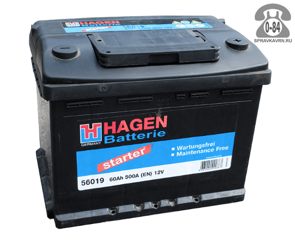 Аккумулятор для транспортного средства Хаген (Hagen) 60 А*час 500 А 12 В прямая 242*175*190 легковой Германия: продажа в Воронеже. Цена, характеристики, параметры. Телефоны, адреса, сайты реализующих фирм.