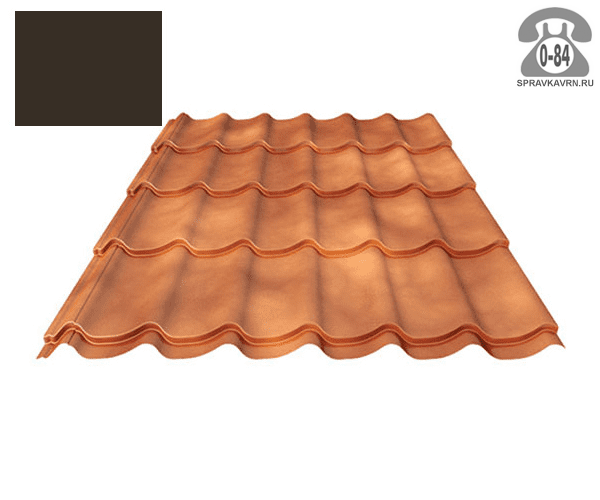 Металлочерепица Металл Профиль СуперМонтеррей (SuperMonterrey) покрытие Нормаl VIK (Normaл) цвет темно-коричневый: продажа в Воронеже. Цена, характеристики, параметры. Телефоны, адреса, сайты реализующих фирм.