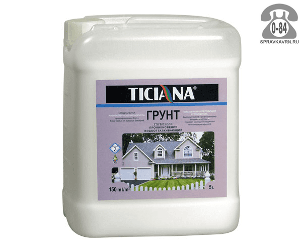 Грунтовка Тициана (Ticiana) Глубокого проникновения водоотталкивающая 3 л: продажа в Воронеже. Цена, характеристики, параметры. Телефоны, адреса, сайты реализующих фирм.