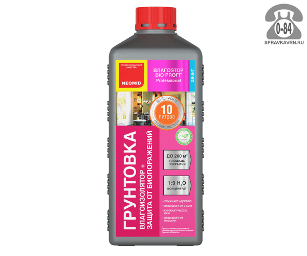 Грунтовка Неомид (Neomid) ВлагоStop Bio концентрат 1 л: продажа в Воронеже. Цена, характеристики, параметры. Телефоны, адреса, сайты реализующих фирм.