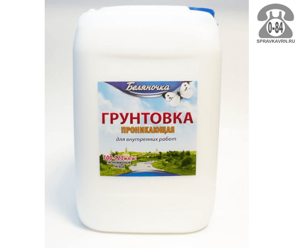 Грунтовка Беляночка Проникающая 10 л белая: продажа в Воронеже. Цена, характеристики, параметры. Телефоны, адреса, сайты реализующих фирм.