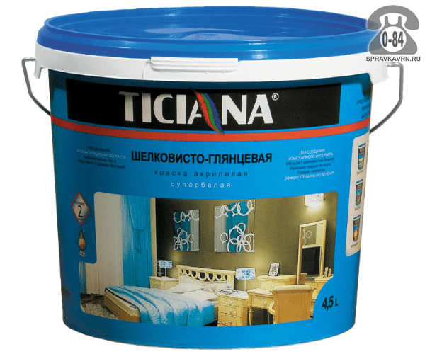 Краска Тициана (Ticiana) Шелковисто-глянцевая 2.5 л: продажа в Воронеже. Цена, характеристики, параметры. Телефоны, адреса, сайты реализующих фирм.