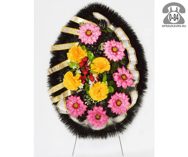 Венок ритуальный 157, 82x50см, овал: продажа в Воронеже. Цена, характеристики, параметры. Телефоны, адреса, сайты реализующих фирм.