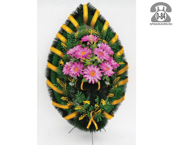 Венок ритуальный 114, 110x65см, капля с корзиной: продажа в Воронеже. Цена, характеристики, параметры. Телефоны, адреса, сайты реализующих фирм.