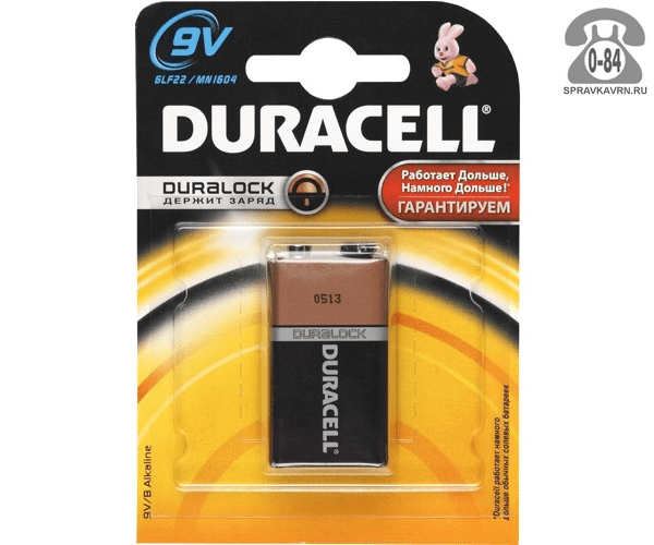 Батарейка Дюраселл (Duracell) Крона (1604, 6LR61, 6F22, 6LF22 BL 1, 6R61) 8.4 В блистер 1 шт. Китай: продажа в Воронеже. Цена, характеристики, параметры. Телефоны, адреса, сайты реализующих фирм.
