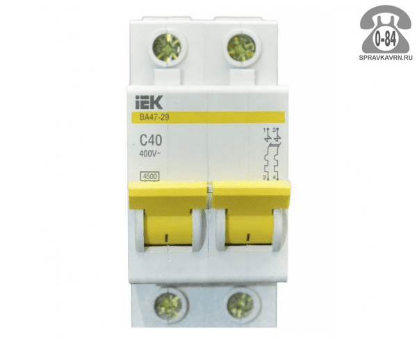 Выключатель автомат. ИЭК (IEK) ВА 47-29 двухполюсный 50А: продажа в Воронеже. Цена, характеристики, параметры. Телефоны, адреса, сайты реализующих фирм.