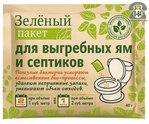 Зеленый пакет для выгребных ям и септиков 40 г : продажа в Воронеже. Цена, характеристики, параметры. Телефоны, адреса, сайты реализующих фирм.