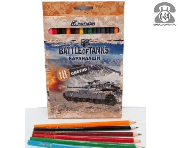 Цветные карандаши Танки цветов 18 картонная коробка: продажа в Воронеже. Цена, характеристики, параметры. Телефоны, адреса, сайты реализующих фирм.