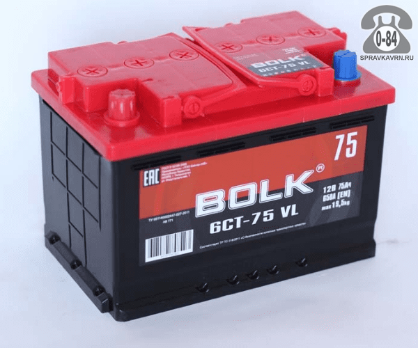 АКБ автомобильная Bolk 6СТ-75L: продажа в Воронеже. Цена, характеристики, параметры. Телефоны, адреса, сайты реализующих фирм.