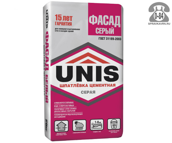Шпаклёвка Юнис Фасад серая 25 кг : продажа в Воронеже. Цена, характеристики, параметры. Телефоны, адреса, сайты реализующих фирм.
