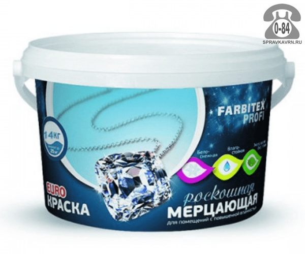 Краска Фарбитекс Профи мерцающая водоэмульсионная 14 кг: продажа в Воронеже. Цена, характеристики, параметры. Телефоны, адреса, сайты реализующих фирм.