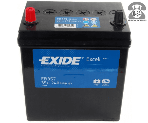 Аккумулятор для транспортного средства Эксайд (Exide) EB357 35 А*час 240 А 12 В прямая 187*127*227 легковой Польша: продажа в Воронеже. Цена, характеристики, параметры. Телефоны, адреса, сайты реализующих фирм.